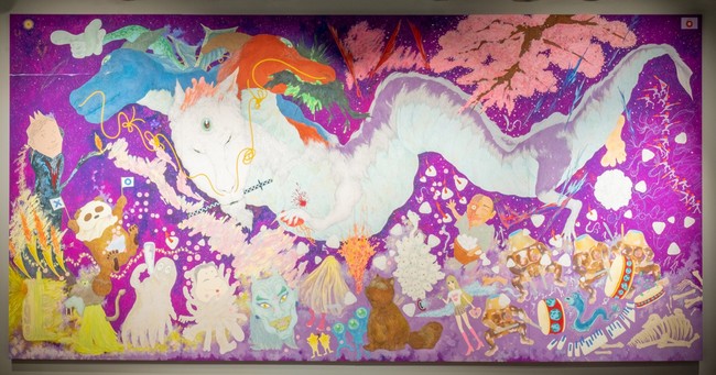 「六本木さんの作品は、見る人によって色々な物語を感じとれると思いました。3つの頭を持つ龍が、過去、現在、未来をあらわすという作家の意図をプレゼンテーションで聞きましたが、見る人によっては片目の変わったおじさんや、おにぎりが飛んでいる場面が可愛いと思えるのかもしれなく、いろんなシーンを見ることができる豊かな作品だと思いました。」