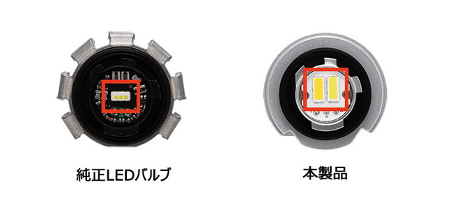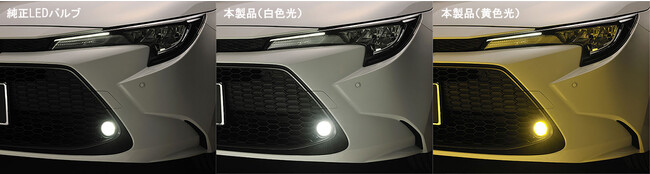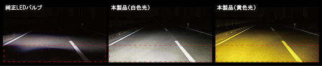 純正LEDバルブと交換できるバイカラーLEDフォグバルブ。手前も明るく照射|GIGA(ギガ)