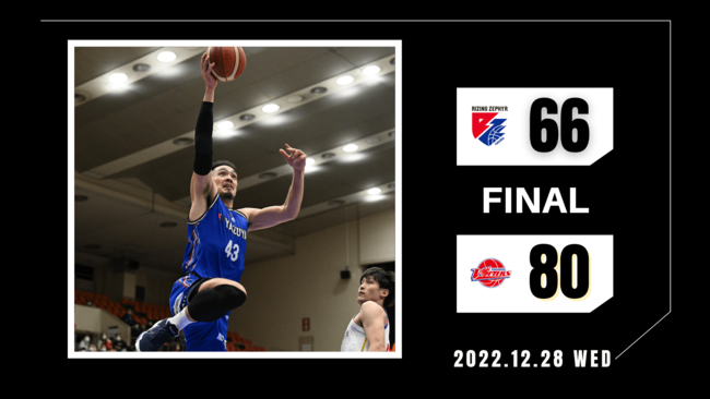 2022年12月28日(水)に開催されましたBリーグ第14節【ライジングゼファーフクオカvs.熊本ヴォルターズ】において“福岡66-80熊本”の結果となりましたことお知らせいたします。