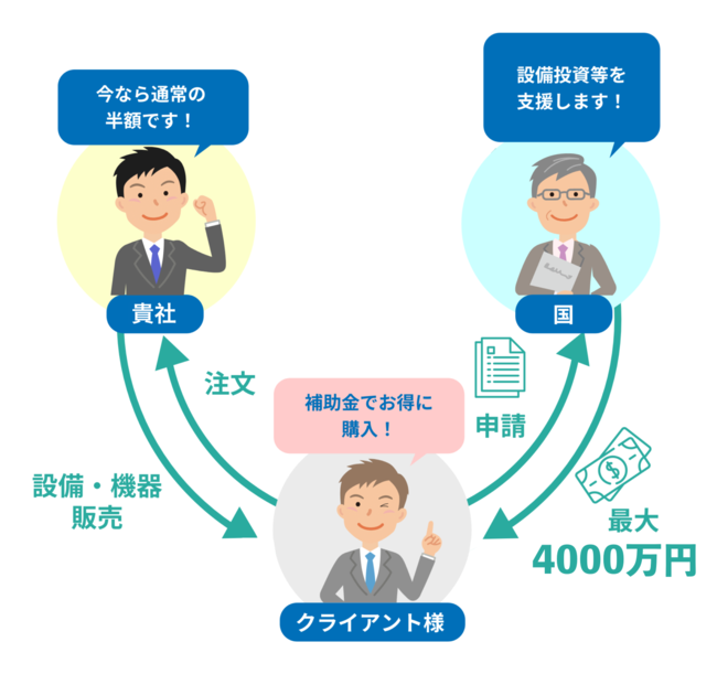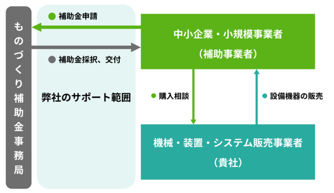 中小企業診断士・行政書士が監督を行う補助金申請のプロが、「機械•装置•システム販売企業」様にむけ「ものづくり補助金」を強力にバックアップ。万全な体制で、御社の販売力強化サポートをいたします。