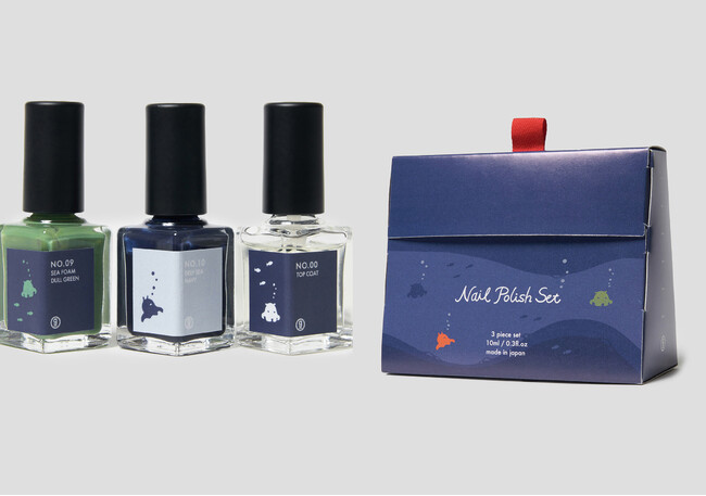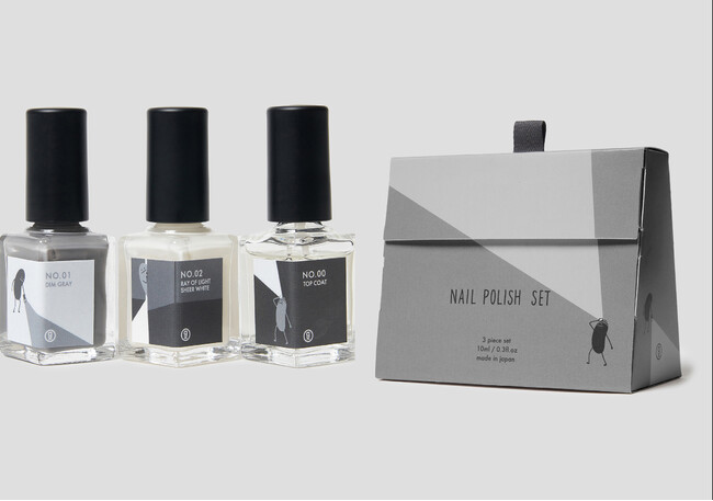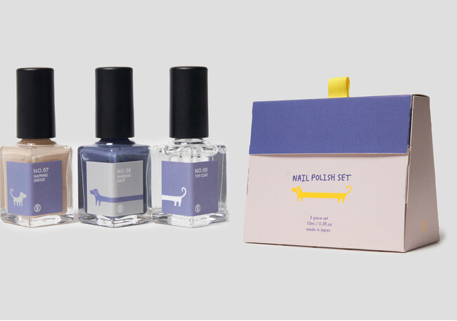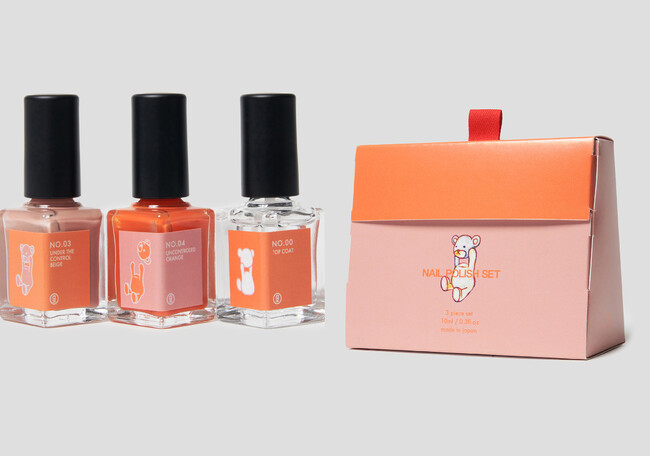 トップコート1本とカラーポリッシュ2本の3本セット。プレゼントにぴったりな専用ボックス付き。