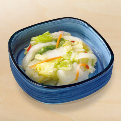 牛丼に白菜ベースのあっさりとしたお新香をトッピングすると、牛丼のうまさが引きたち、食感にもアクセントが加わります。