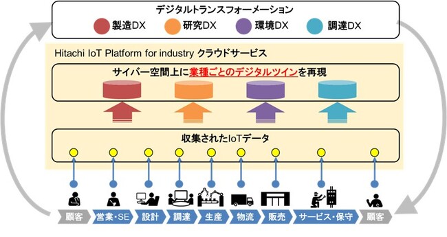 日立は、お客さまとともにDXサイクルをまわしながらユースケースやデータモデルの実績を積み重ね、それらをもとに選択可能なサービスメニューを拡充することで、さまざまな業種や業務から生まれる新たなニーズに継続的に応えていきます。また、製造業や社会インフラ分野以外のインダストリ・クラウドを立ち上げ、幅広い業種におけるデータドリブンなビジネス変革を支援していきます。