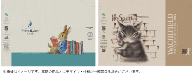 デザインについては、趣旨にご賛同いただいた「ピーターラビット™」、「わちふぃーるど 猫のダヤン」それぞれのコンテンツのイラストを使用しており、オリジナルの4種類のブックカバーとなっています。日販は、「ONE ECO PROJECT」の活動として、コンテンツを通じて、エコに対する知識の啓蒙、アップサイクルされた製品を手に取るきっかけづくりに更に取り組んでまいります。