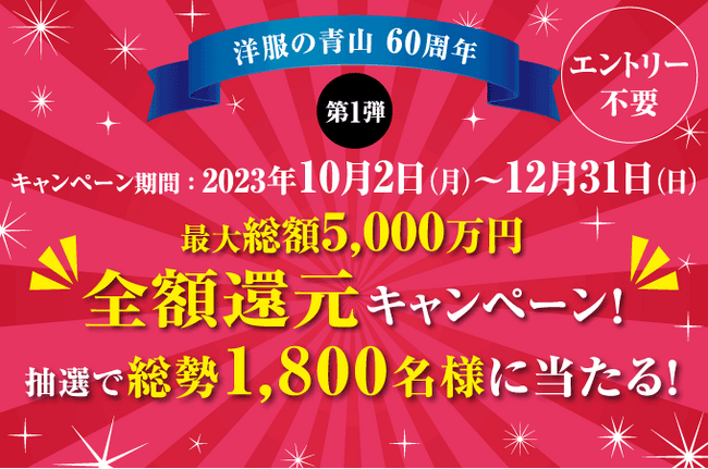 【洋服の青山60周年】AOYAMAカード・BLUE ROSEカード会員様限定最大総額5,000万円!全額還元キャンペーン!