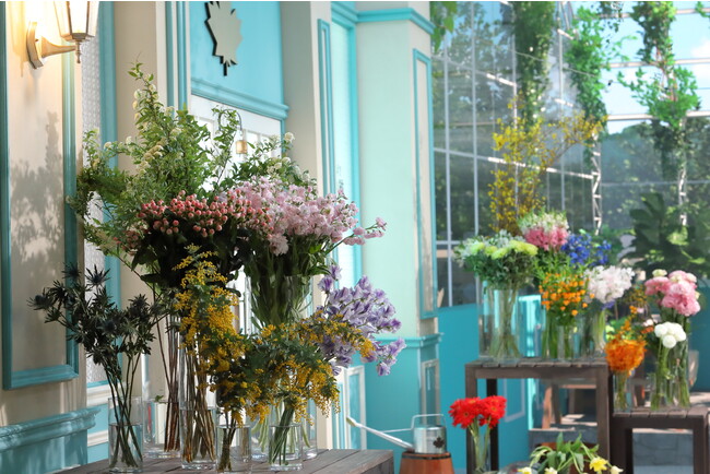 たくさんの素敵な生花により、さらに彩りと輝きを増し独特な世界観を作り出しました。実在するか分からない、美しく不思議な花屋に訪れた気持ちになってご覧ください。