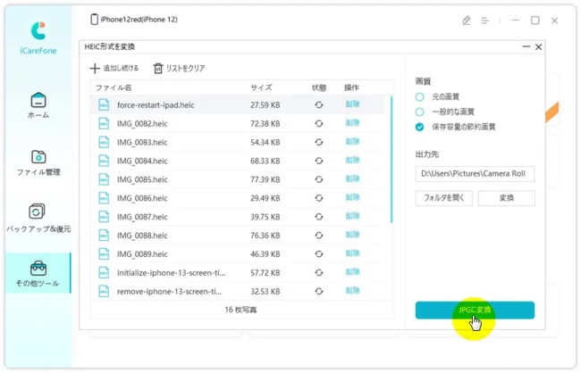 【一括変換】HEICからJPEGに簡単に変換する方法-iCareFone