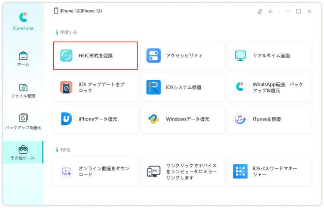 STEP2:「その他ツール」をクリックして「HEIC形式を変換」を選択します。
