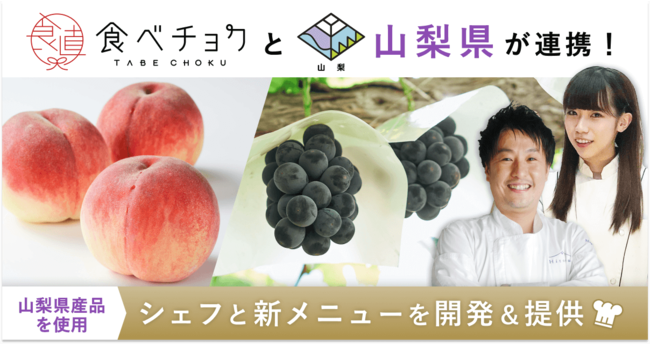 食べチョクが山梨県と連携。シェフと新メニューを開発し、店舗で山梨県産品の料理とスイーツを提供。ウェブとリアルを掛け合わせた生産者のファンづくりをサポート。