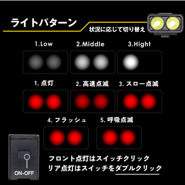 前も後ろも点灯し、付属のブラケットを使えばヘルメットライトとしても使用出来ます。装着も簡単で、工具不要で使用出来ます。USB充電は汎用性の高いタイプCを採用しています。