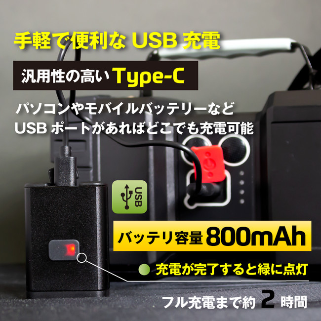 バッテリ容量 800mAh(フル充電まで約2時間)