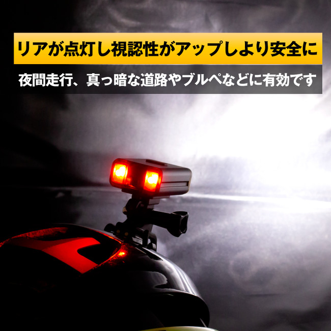 ヘルメットに装着してヘッドライトとして、そして後方に存在を示すリアライトとして使用できます。