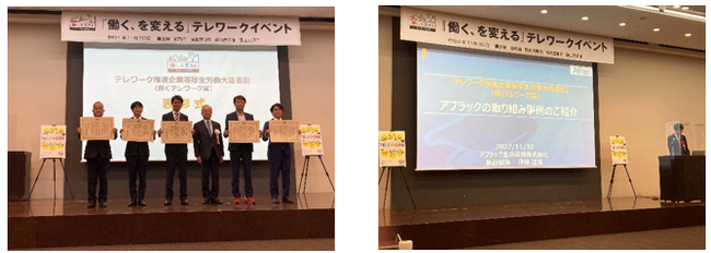 アフラック生命保険株式会社(代表取締役社長:古出 眞敏)は、この度、厚生労働省が主催する「令和4年度『テレワーク推進企業等厚生労働大臣表彰(輝くテレワーク賞)』」において、「優秀賞」を受賞し、11月