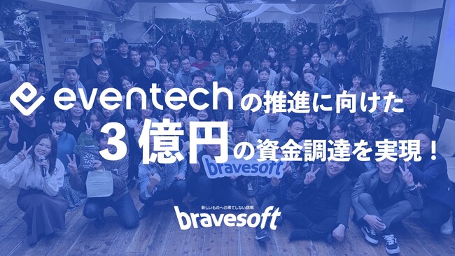 “イベンテックNo.1企業”を目指し、主として、イベントDXを推進するイベントプラットフォーム「eventos」と、累計1億以上のダウンロード実績を誇るアプリ開発(パートナープロダクト開発)を提供するbravesoft株式会社(東京都港区、代表取締役:菅澤英司、以下bravesoft)は、既存投資家(イノベーション・エンジン株式会社)及び新規投資家(地域創生ソリューション株式会社、株式会社エアトリ、株式会社フロンティアインターナショナル、株式会社ピアズ、グローバル・タイガー・ファンド3号投資事業有限責任組合)を引受先とした第三者割当増資及び銀行融資により約3億円の資金調達を実施いたしました。