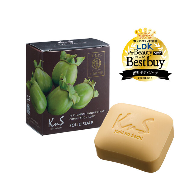 液体ボディソープに比べると洗浄力に劣る固形ボディソープは、4製品とも評価が伸び悩みましたが、その中から頭ひとつ抜け出したのがKnSの薬用柿渋石鹸。ニオイのもととなる菌の繁殖を抑える殺菌成分が配合されているのもうれしい限り。
