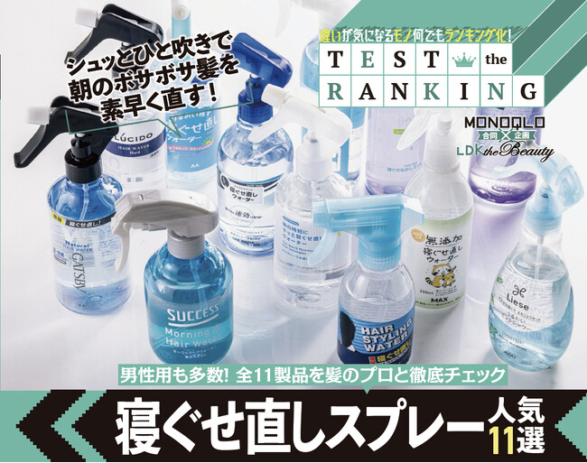 コスメを本音で評価する姉妹誌『LDK the Beauty』とのコラボ企画! 「寝ぐせ直しスプレー人気11選」では、髪のプロと一緒に徹底チェックして、シュッとひと吹きで朝のボサボサ髪を素早く直す1本を探しました。さらに、見た目年齢に大きく影響する目元をケアする「男性用アイクリーム人気12選」や、頭皮をケアして髪のボリュームもアップする「スカルプシャンプー&トリートメントABC判定」、気になる汗臭や加齢臭をスッキリ落とす「ボディソープ27製品ABC判定」など、大人世代に最適なメンズコスメをたっぷりご紹介しています。数々のコスメをテストしまくってきた『LDK the Beauty』とMONOQLOが選んだ優秀アイテムで、男の魅力を磨きましょう! 本リリースでは、高評価を獲得した製品をご紹介します。