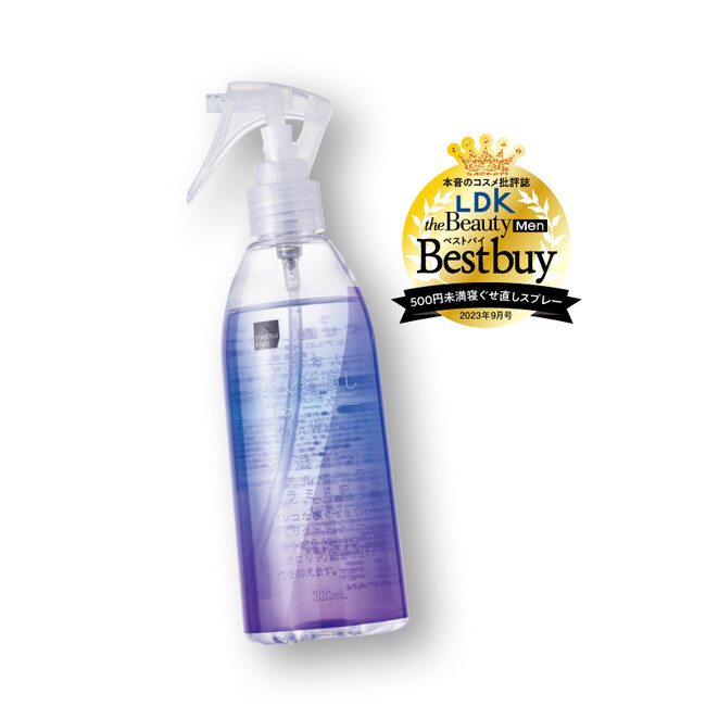 乾きが早く、ガンコな寝ぐせも素早く解消。ふんわり感を持たせつつ、広がりやすい髪でも適度にまとまるキレイな仕上がりで、プロからも高い評価を受けました。スプレーのしやすさや髪なじみの良さなど使い勝手も申し分なく、モニター評価でも高得点をマーク。仕上がりと使用感で2冠を達成し、他の製品を引き離しました。髪の質や長さに左右されにくく、後はそのまま手ぐしでサッと済ませたい人にも、ジェルなどでしっかりスタイリングしたい人にもおすすめと、オールマイティに使える1本です。朝の時短に大活躍してくれるのはもちろん、男ぶりも上げてくれそう!