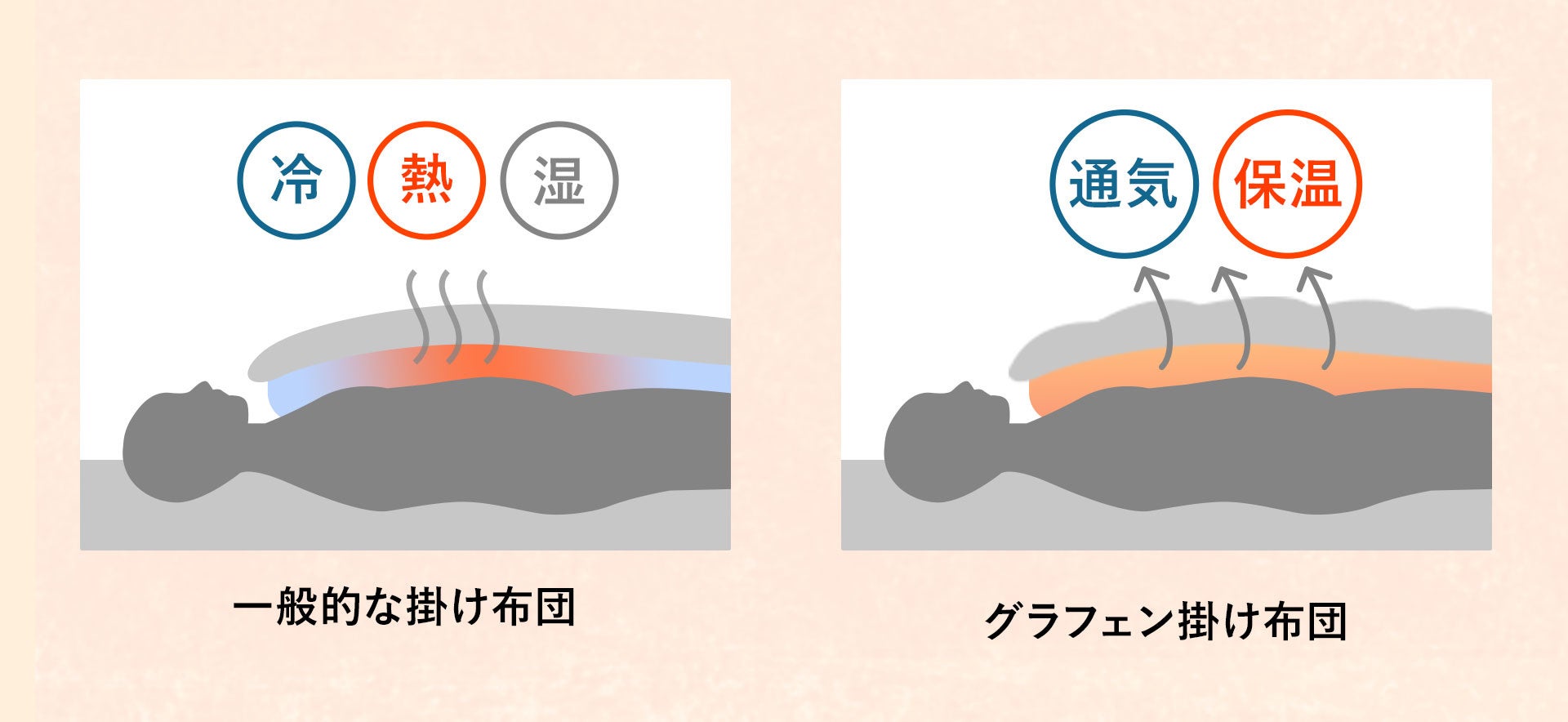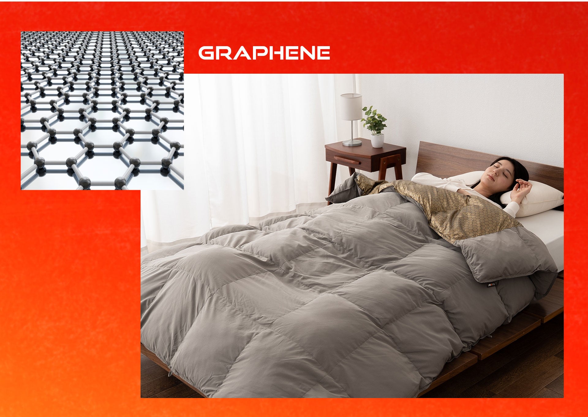 グラフェンは高い通気性もあるため、一般的な布団のように熱がこもったり、湿気で蒸れたりせず、快適な温度と清潔さを朝まで保ちます。[画像5: https://prcdn.freetls.fastly.net/release_image/51129/178/51129-178-68db1ab04367a0023d59349406ba85bb-1920x884.jpg?width=536&quality=85%2C75&format=jpeg&auto=webp&fit=bounds&bg-color=fff ]