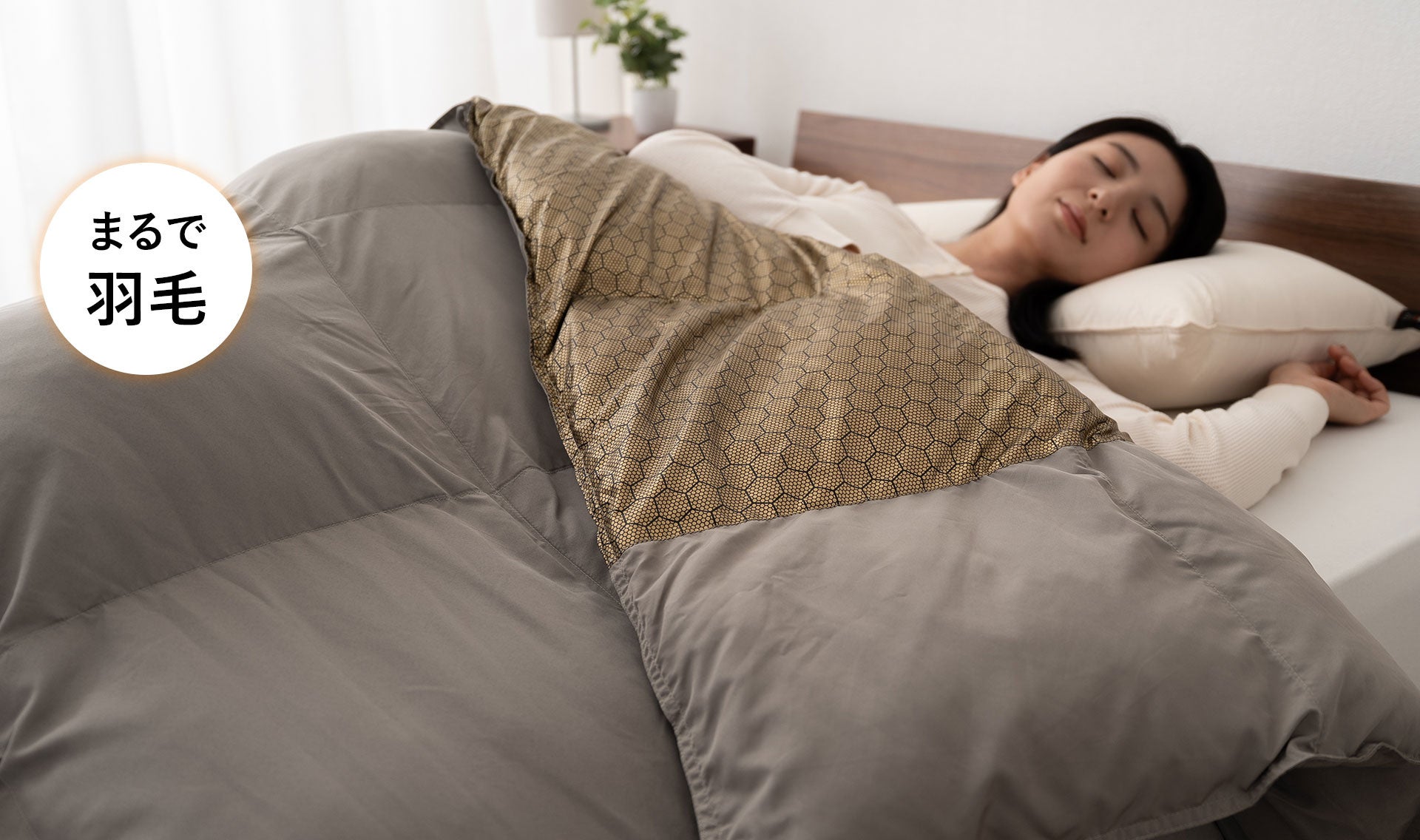抗菌・防臭のグラフェン素材+洗いやすさを重視した仕様で、快眠+安心を両立。羽毛布団では難しかった「洗える羽毛並みの暖かさ」を実現しました。
