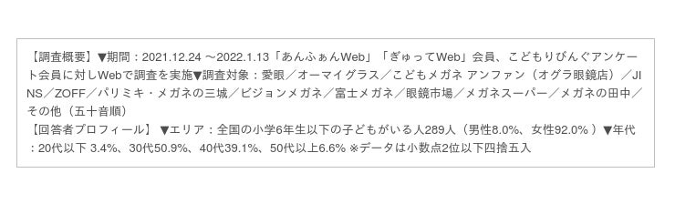 園児とママの情報誌「あんふぁん」「ぎゅって」を発行する株式会社こどもりびんぐ(所在地:東京都千代田区、代表取締役:中島一弘)では「シルミル研究所」としてリサーチ事業を展開しています。「シルミル研究所」では、全国のママ・パパを対象にしたリサーチ事業「こどもリサーチ」を実施し、Webコンテンツとして発信しています。第31回となる調査テーマはママ・パパが選ぶ「子どもの眼鏡販売店」について。小6以下の子どもがいる人を対象に、利用経験や感想を聞きました。