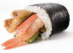 ずわいがに、鰻、えび、玉子などを贅沢に使った海鮮巻。