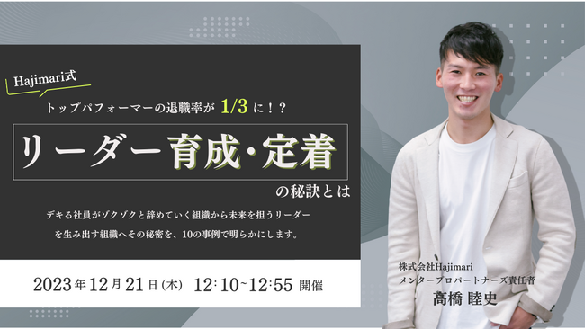 新卒社員をたった2年で事業部長に急成長させるなど、社員が働き続けたい環境を支援取り組んできたHajimari事業責任者の高橋が講師として、トップパフォーマーを社内に定着させ、会社を担うリーダーに育成する秘訣について徹底解説します。
