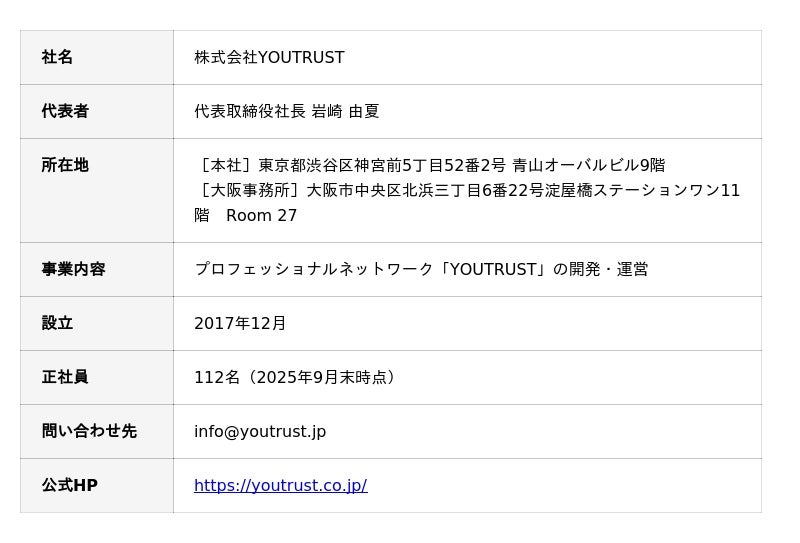 ? 採用支援「YOUTRUST TALENT」:https://lp.youtrust.jp/recruiter
