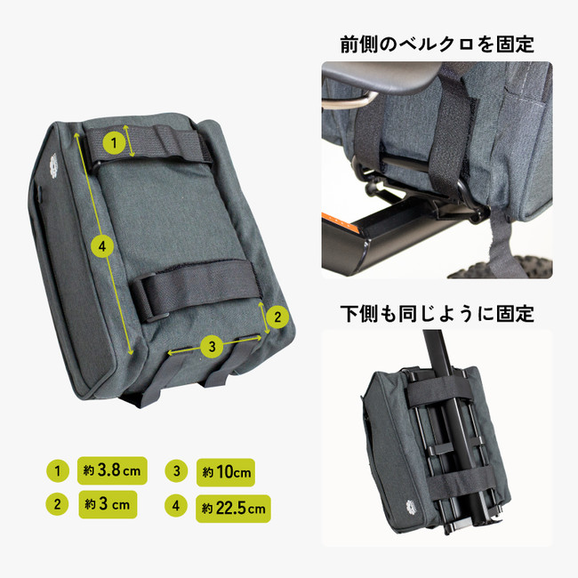前2本と横2本の計4本のベルクロ固定するので