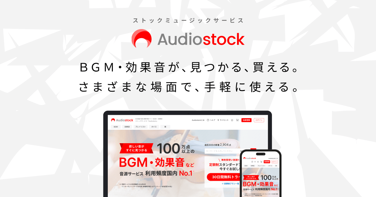 株式会社オーディオストックは、クリエイターの持続的な創作活動を支援する企業です。世界最大級のロイヤリティフリーのストックミュージックサービス「Audiostock」等、ミュージシャンの収益化と動画クリエイターの制作に役立つサービスを展開しています。