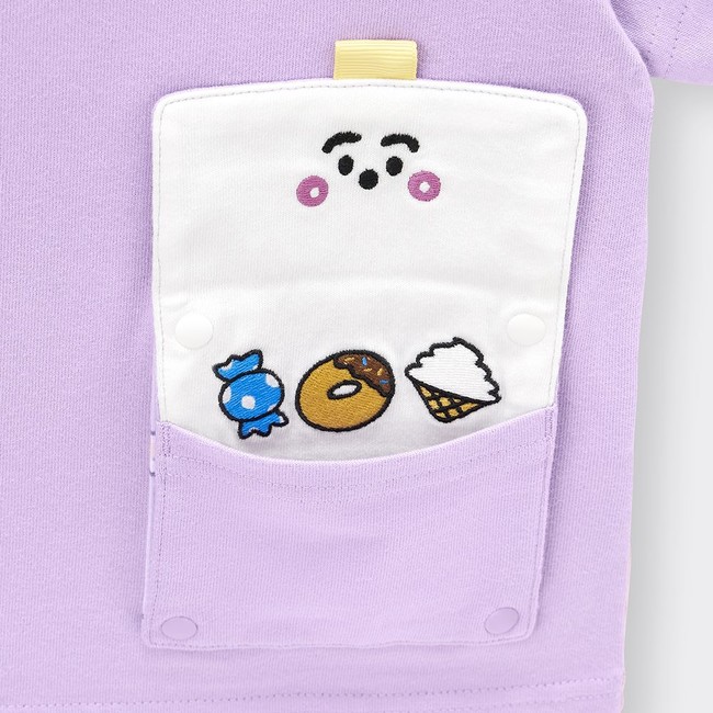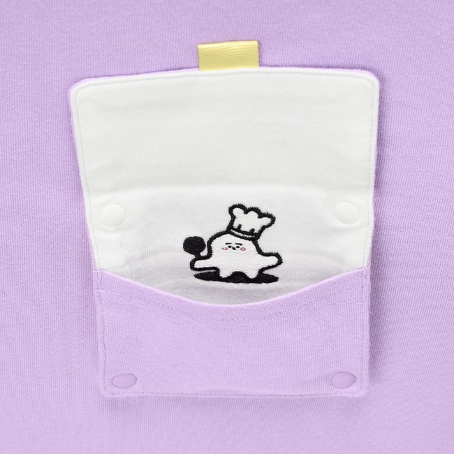 ポケットの中に隠れている“ぷしゅぷしゅ”と食べ物の図柄を通じて、子どもの食事を応援するTシャツ。親子でお揃いはもちろん、ポケット交換も可能です。