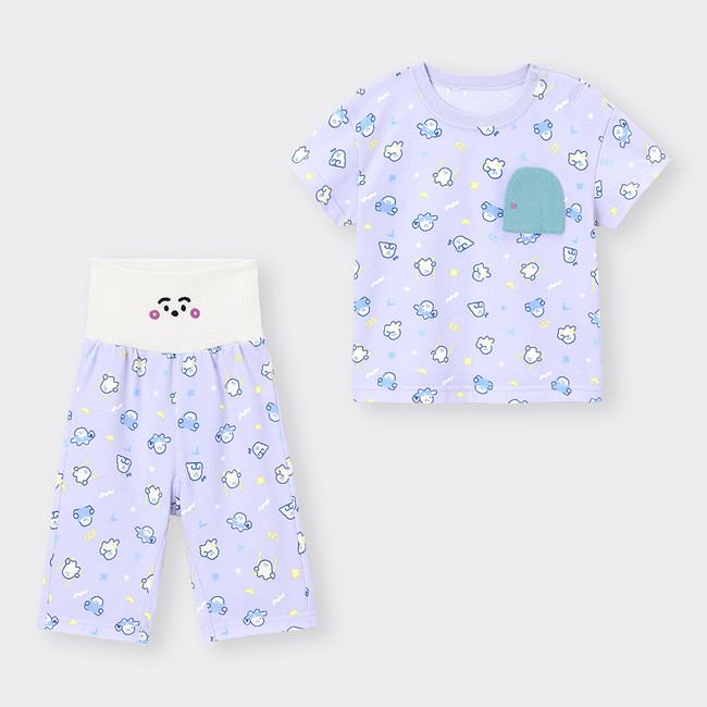 やさしいタッチの絵柄と胸のフラップに隠れた“ぷしゅぷしゅ”で、お着替えやおやすみ前のコミュニケーションが楽しみになるようなデザインにこだわりました。お腹をすっぽりと包み込む腹巻き付きで、安心して着られます。