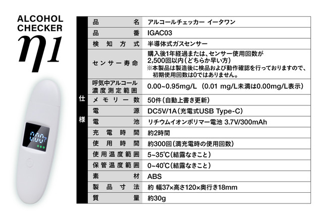 【酒気帯び確認義務化に備えを!】息を吹きかけ体内の残留アルコール濃度を簡単測定「アルコールチェッカー イータワン IGAC03」新発売