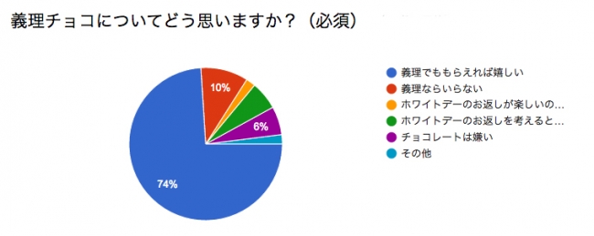 ホームパーティー好きな男性へ聞いたところ、一番多かった回答は「義理でももらえれば嬉しい」(74%)です。「ホワイトデーのお返しが楽しいので欲しい」(2%)と合わせると76%の人が義理チョコには肯定的な意見を持ちました。