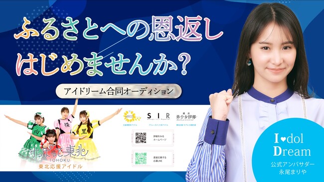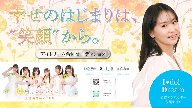 アイドリーム合同オーディションは、アイドリームで運営する『向日葵プリンセス』『サンスポアイドルリポーター SIR』『けっぱって東北』『横浜美少女図鑑』の全国一斉オーディション。