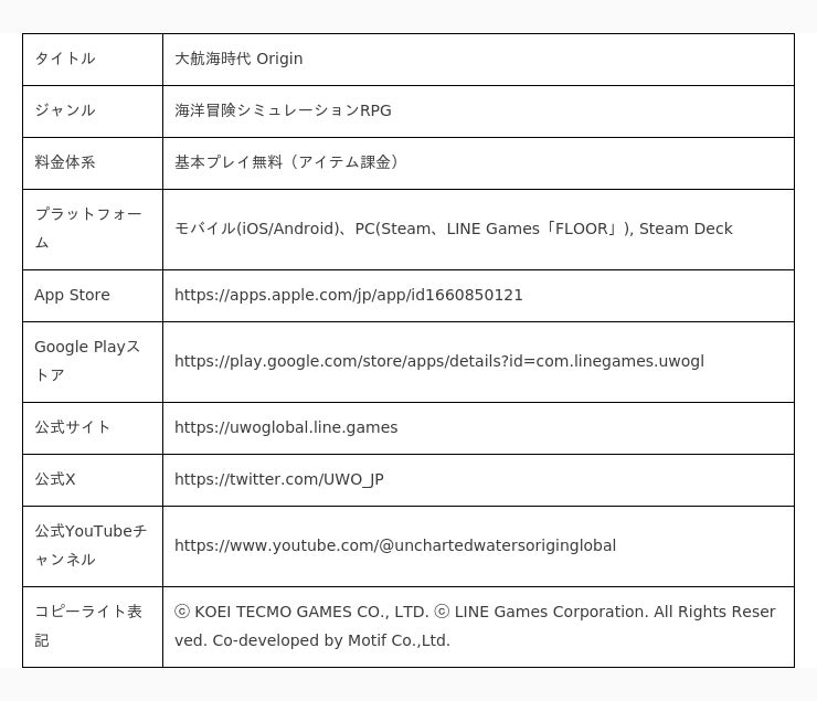 『大航海時代 Origin』は、株式会社Motifと株式会社コーエーテクモゲームス(代表:鯉沼 久史)が共同開発を行った大航海時代シリーズ30周年を記念するタイトルです。
