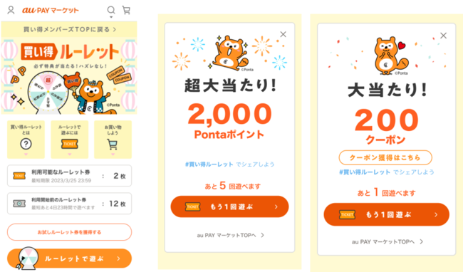 au PAY マーケット、2,000円以上の購入でポイント・クーポンが必ずあたる「買い得ルーレット」開始