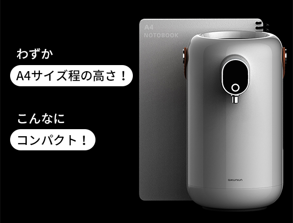 「αikunlun」の寸法は150mm×191mm×272mmになりますので、通常の家庭用のウォーターサーバーと比較してかなりコンパクトです。わずかA4サイズ程の高さで、部屋のどこに置いても場所を取らないだけではなく、付属のバンドで便利に持ち運ぶこともできるので、オフィス、ホテル、旅先、出張先でも温かいお湯を飲みたいときにすぐ飲めるようになります!