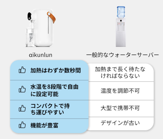 「αikunlun」はわずか数秒間で常温水をお湯に加熱できる急速湯沸かしウォーターサーバーです。