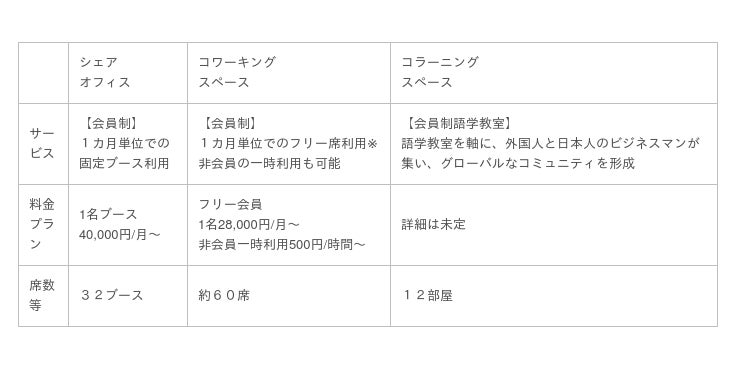 協業内容:コラーニング・コワーキングスペースの運営及びコンサルティング