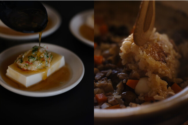 ・冬(千切り大根餅、中華茶碗蒸し、鱈とほうれん草のナンプラーバター蒸し、海老豆腐蒸し しょうがあんかけ、牡蠣の台湾風卵焼き、四川麻婆豆腐、ラムと春菊の水餃子など)
