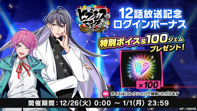 また、アプリログインで録り下ろし特別ボイスとジェムを獲得することができます。アニメ放送毎にキャラクターが切り替わります。