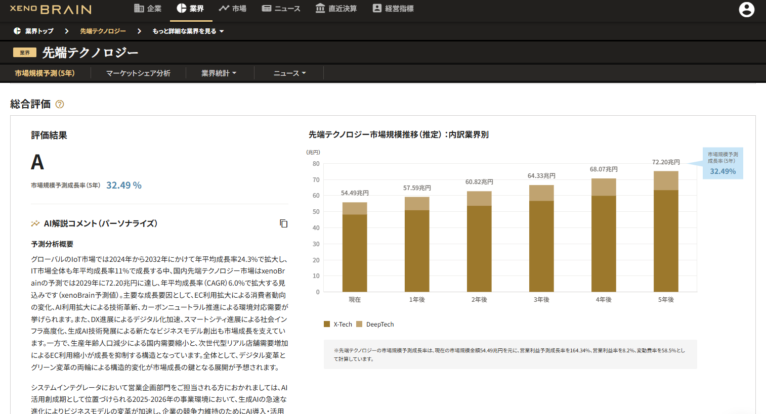 経済予測プラットフォーム『xenoBrain』、1万5,000業界の5年先市場規模予測に「パーソナライズAI解説コメント」機能を追加