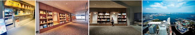 横浜や空にまつわる書籍が常時約2,000冊取り揃えられており、横浜を360°見渡す絶景を望みながら、ゆっくりと読書をお楽しみいただけます。