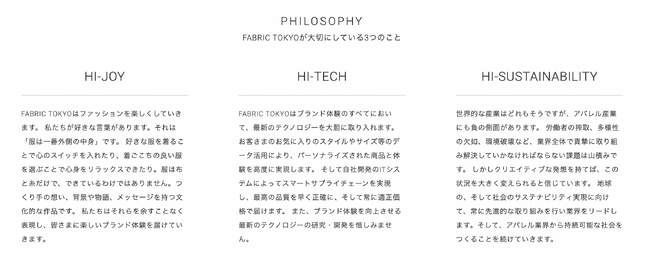 ※PHILOSOPHY FABRIC TOKYOが大切にしている3つのこと