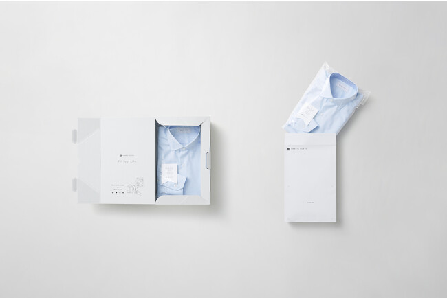 シャツの購入には従来の梱包箱に加えて簡易包装用の配送袋を追加しました。