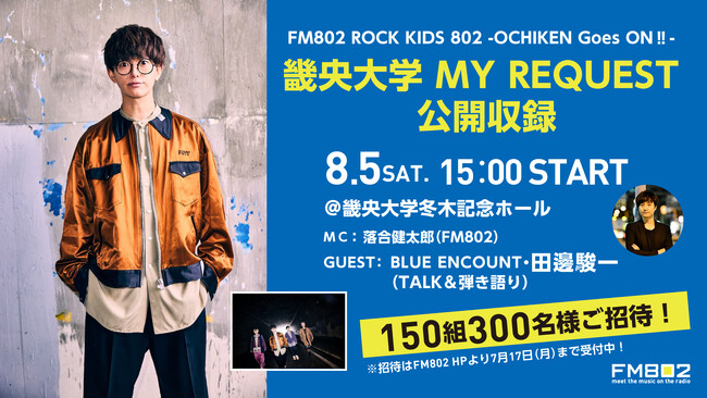 BLUE ENCOUNT・田邊駿一をゲストに迎えたFM802番組公開収録が決定! FM802リスナー150組300名様をご招待します。
