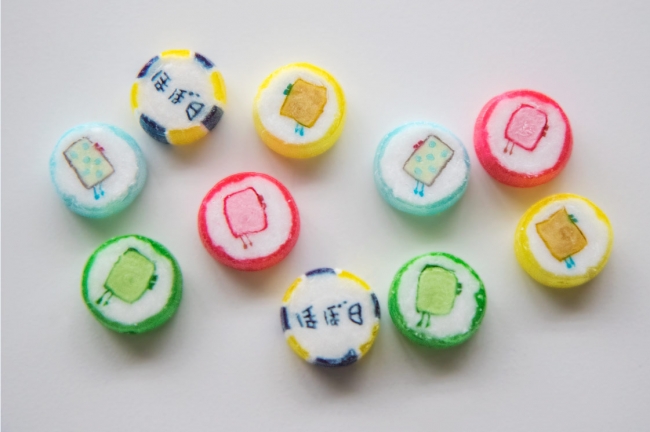 さらに発売を記念して、ほぼ日手帳を扱うロフト全店舗で税込合計3,000円以上の「ほぼ日手帳」関連商品をお買い上げいただいたお客様に先着で、ほぼ日手帳カバー「カラーズ」デザインのキャンディ(写真右)をプレゼントいたします。