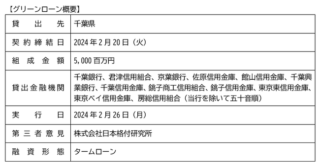 千葉銀行(頭取 米本 努)は、2024年2月26日(月)、千葉県(知事 熊谷 俊人)に対し、県内の地域金融機関と連携して、グリーンローンを実行しましたのでお知らせします。地域金融機関が地方公共団体に対してグリーンローンを実行するのは、県内初の取組みとなります。