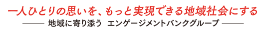 当行グループは、「一人ひとりの思いを、もっと実現できる地域社会にする」をパーパスに掲げ、地域の社会的課題解決に貢献するなど社会的価値を提供し、地域に寄り添うエンゲージメントバンクグループを目指します。