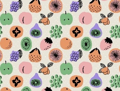 モチーフ:果物(柿、いちじく、青梅、みかん、キュウイ、いちご、ぶどう、デコポン、桃、ビワ、梨)